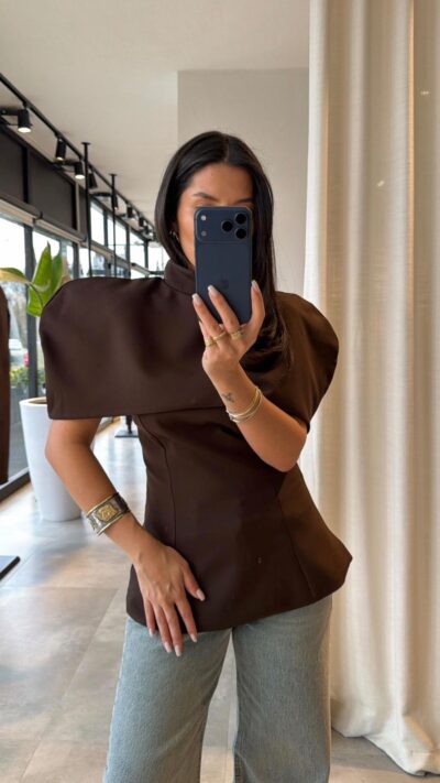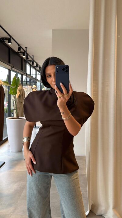 Brown Structured Asymmetrical Shoulder Top