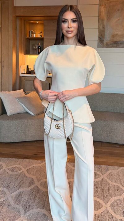 Ivory Puff Sleeve Top And Pants Set