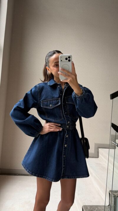 Dark Blue Denim Button-up Mini Dress