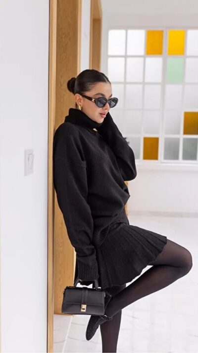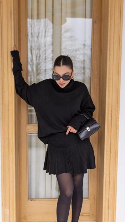Original price was: $29.$25Current price is: $25.Scarfed V Neck Knitwear Set Black