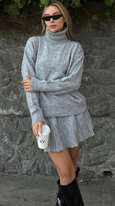 Original price was: $55.$35Current price is: $35.Scarfed V Neck Knitwear Set Anthracite