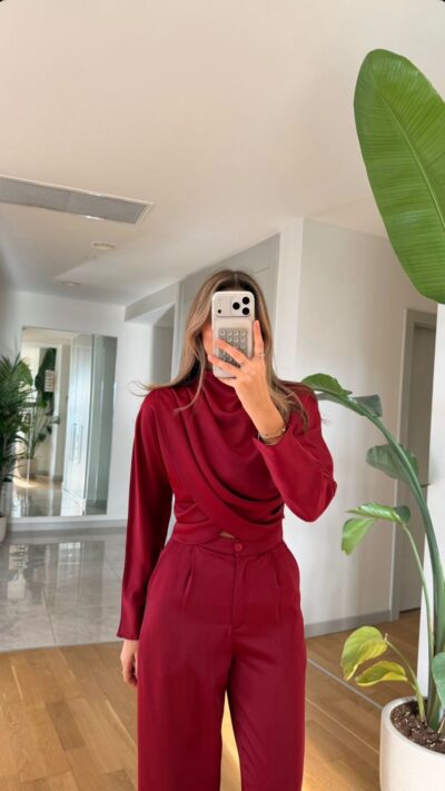 Shimmerical Back Neckline Asymmetrical Blouse Set