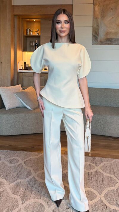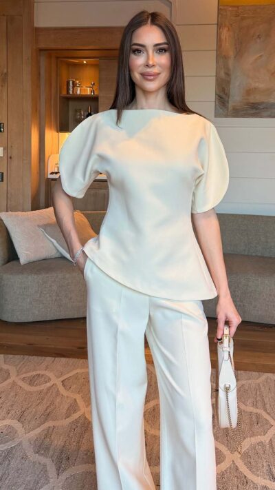 Ivory Puff Sleeve Top And Pants Set