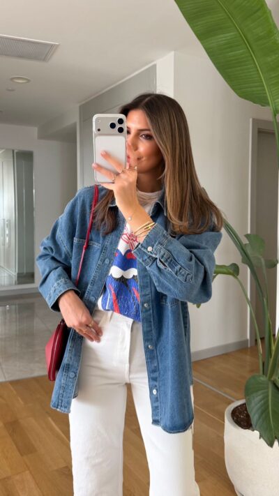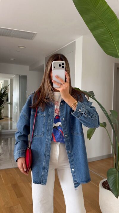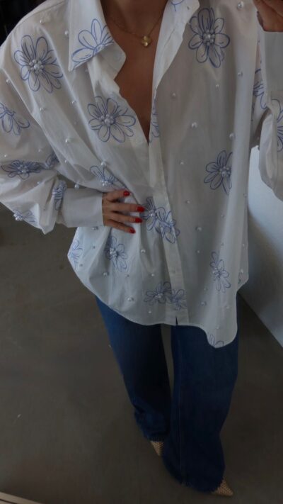 Thick Cuffed Pocket Oversize Blue Poplin Shirt
