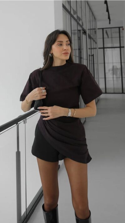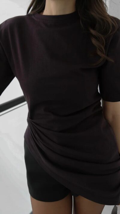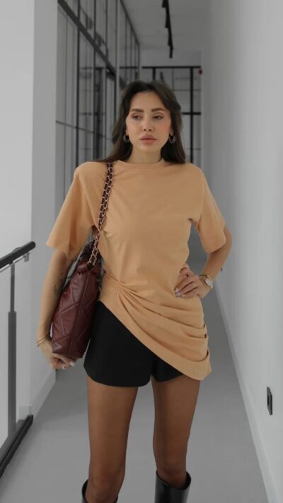 Brown Ruched Asymmetric T-shirt