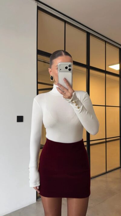 $21Biyeli Striped Ecru Short Sleeve Knitwear