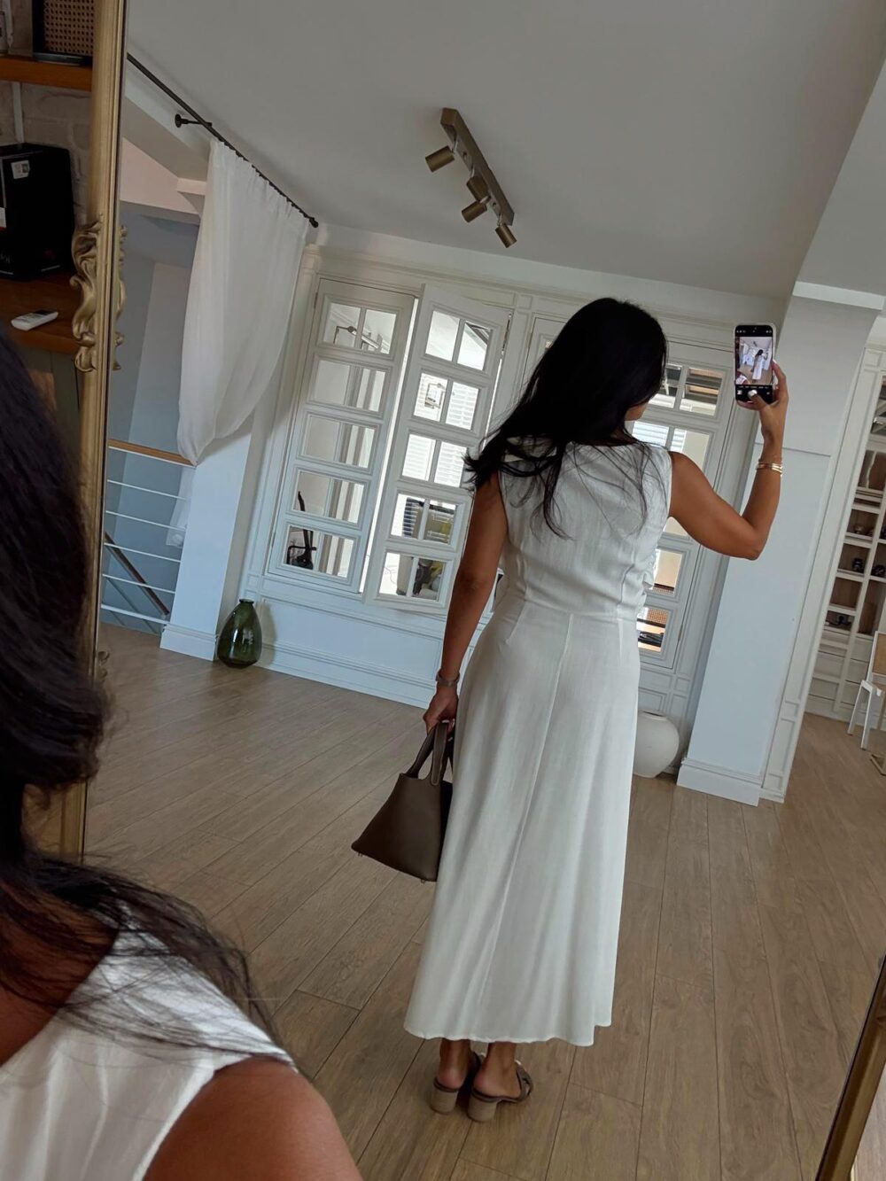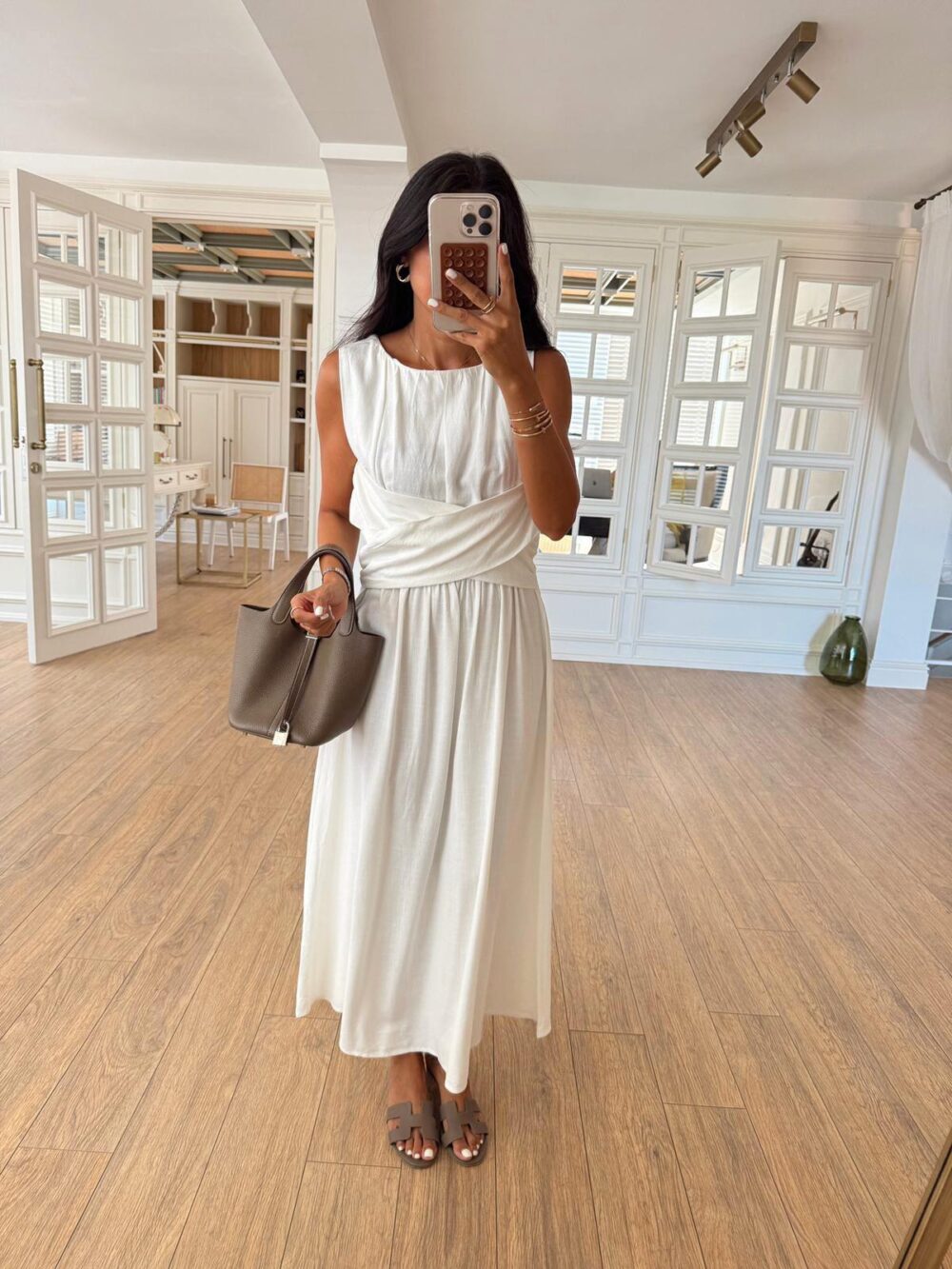 Around Crew Neck Cross Front Detailed Linen Dress