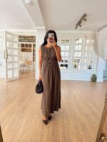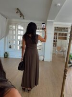 Around Crew Neck Cross Front Detailed Linen Dress $33