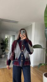 Baklava Pattern Cardigan With Chardon – Claret Red