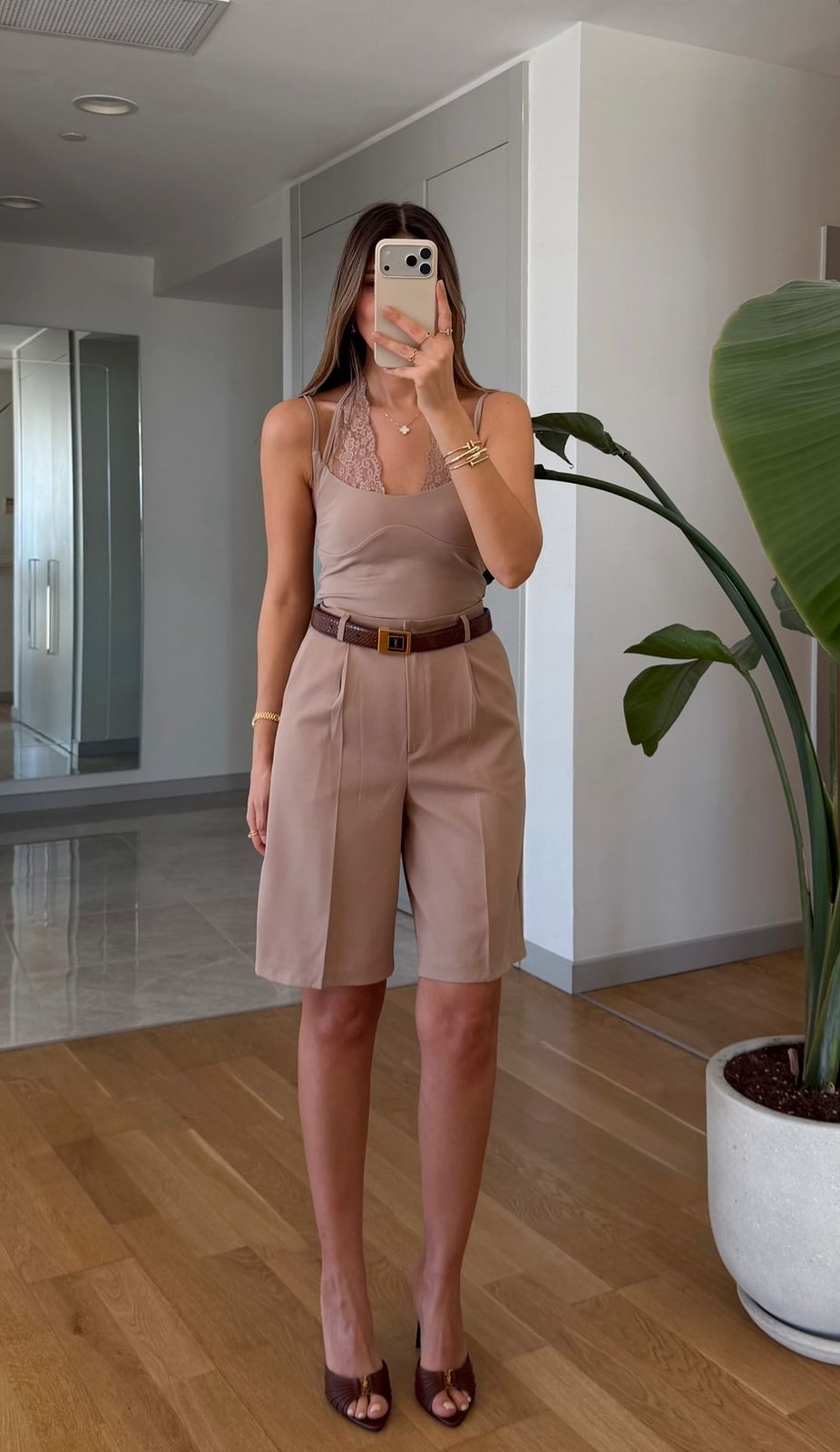 Beige Lace Trim Tank Body