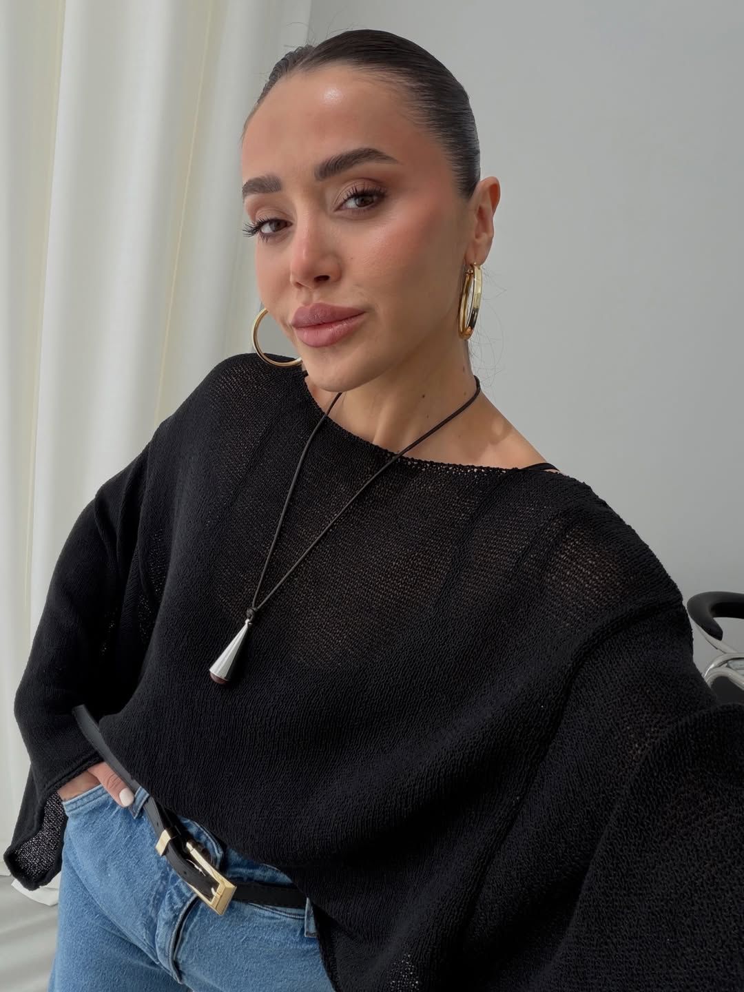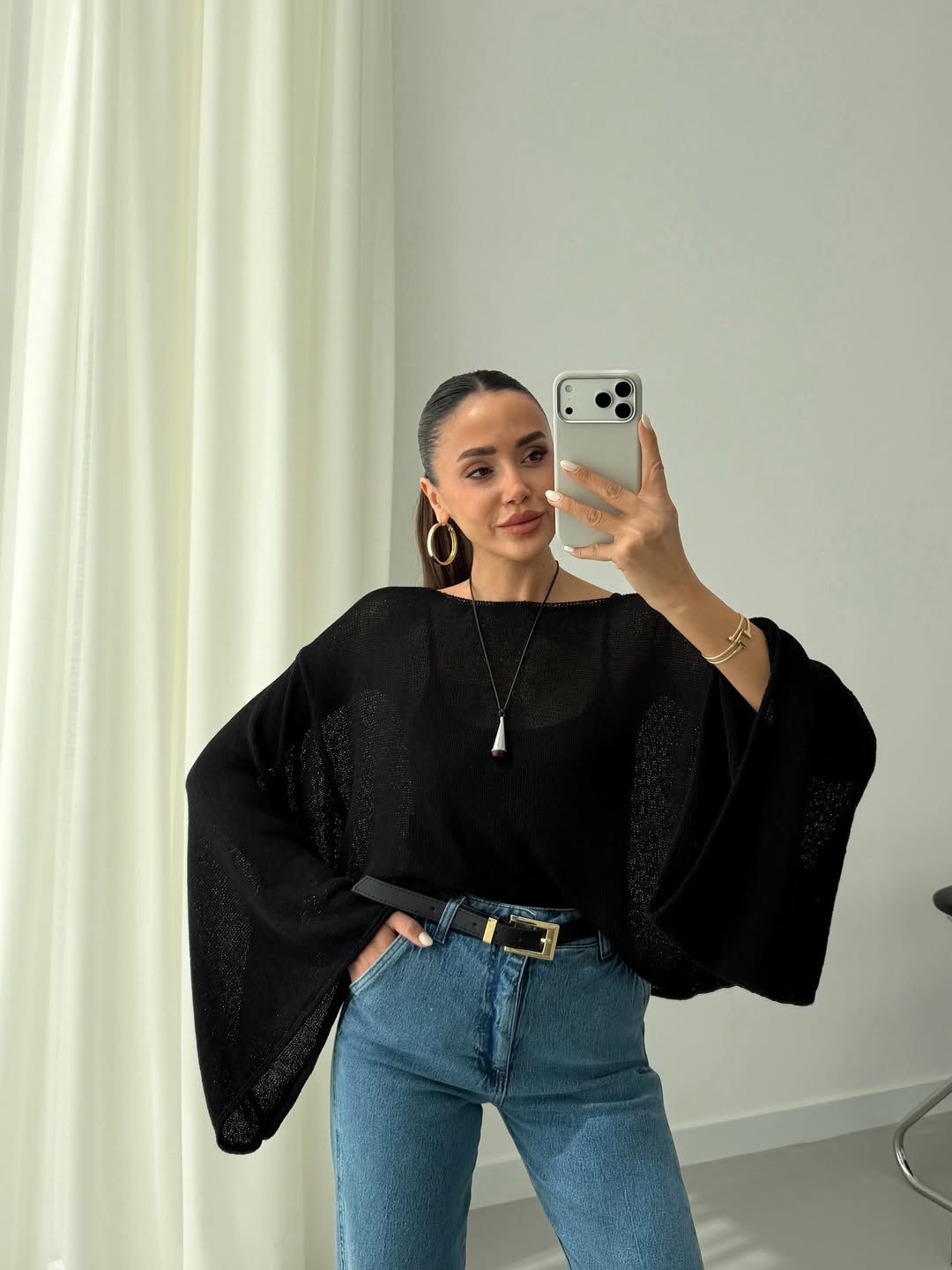 Black Batwing Sleeve Knit Top