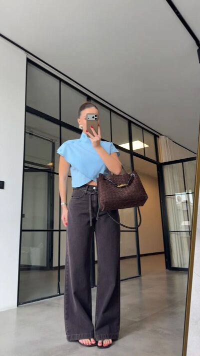 Brook Cut Leg Palazzo Jeans – Brown Tinted