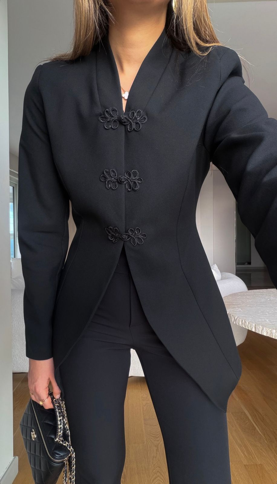 Ice Blue Self Patterned Chain Detailed Zippered Jacket