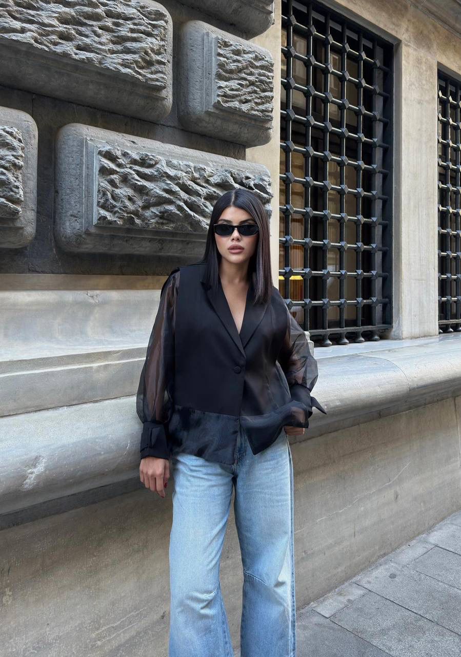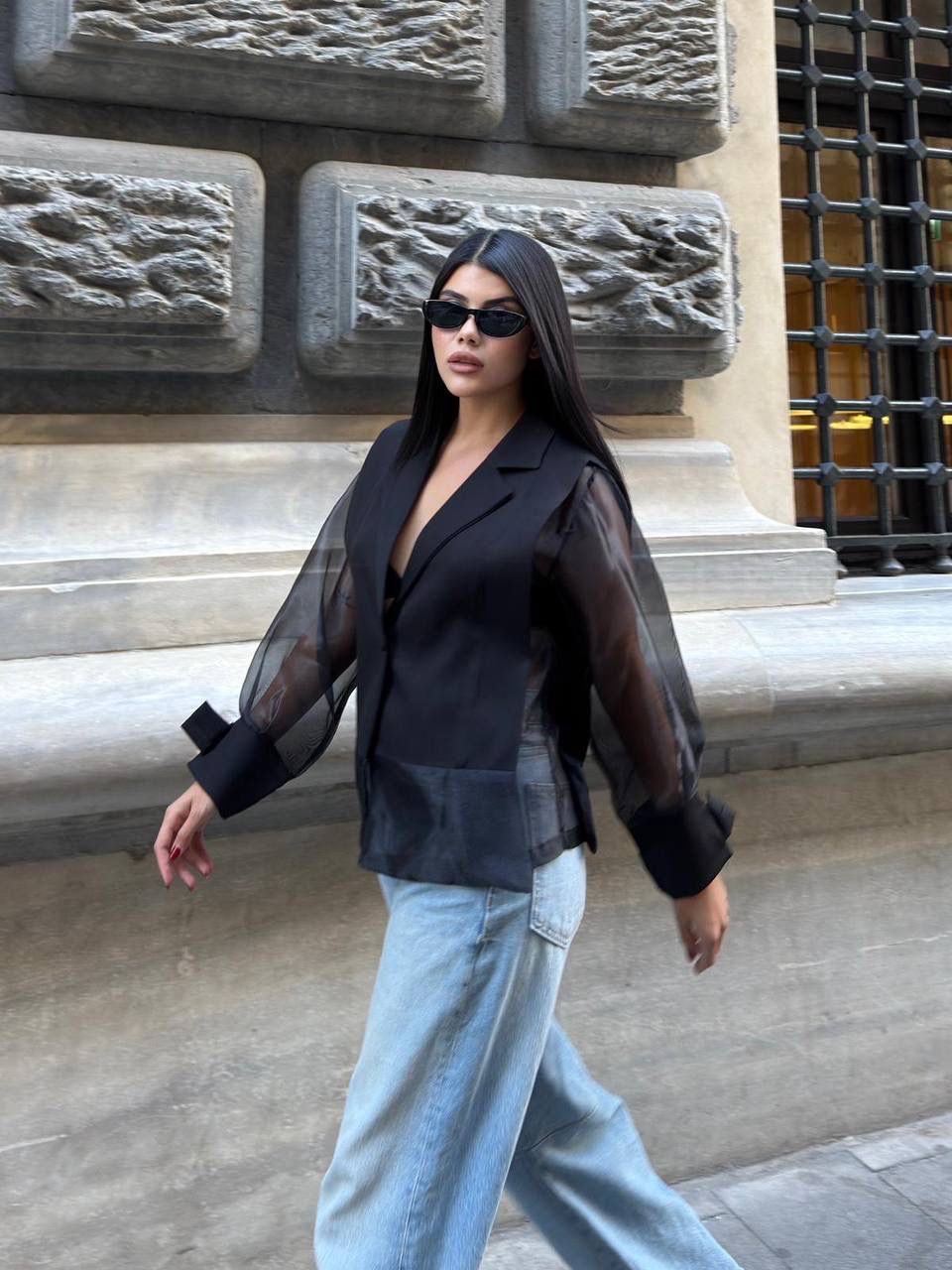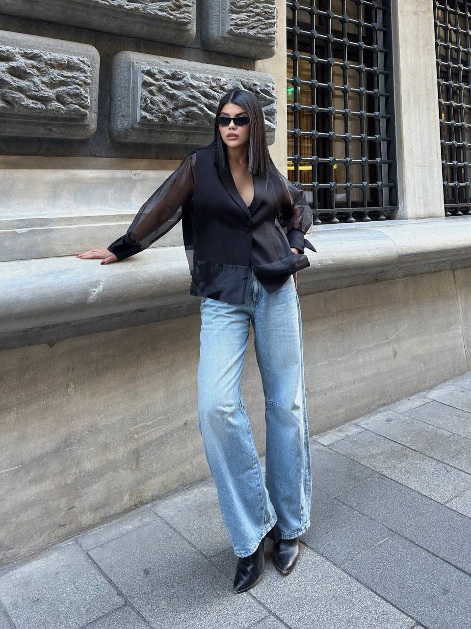 Ice Blue Self Patterned Chain Detailed Zippered Jacket