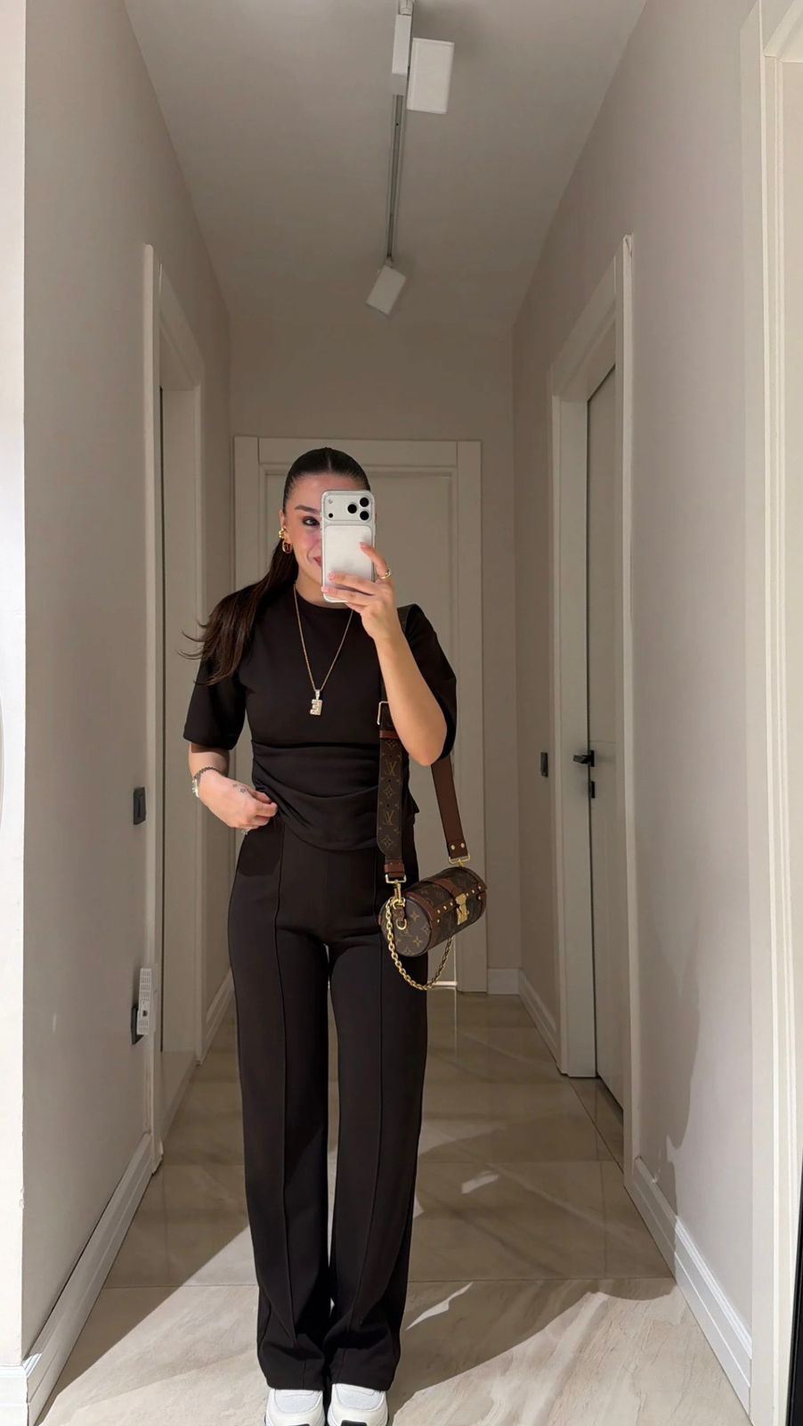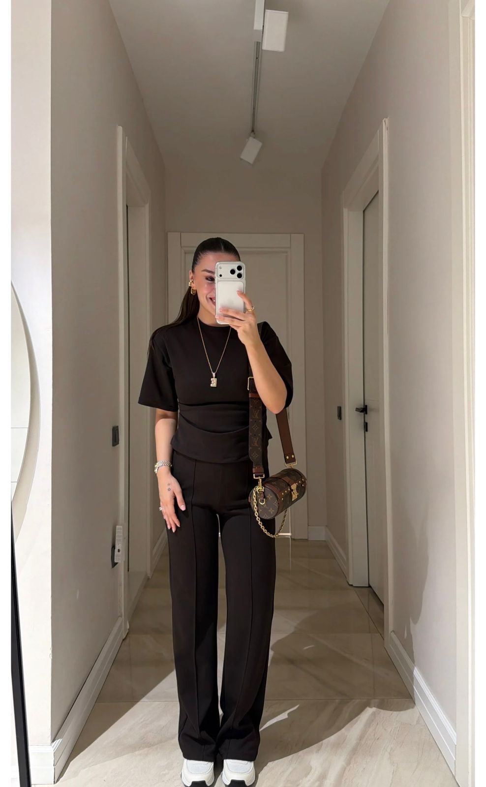 Black-white Checkered Stripe Detailed Trousers Blouse Knitwear Set