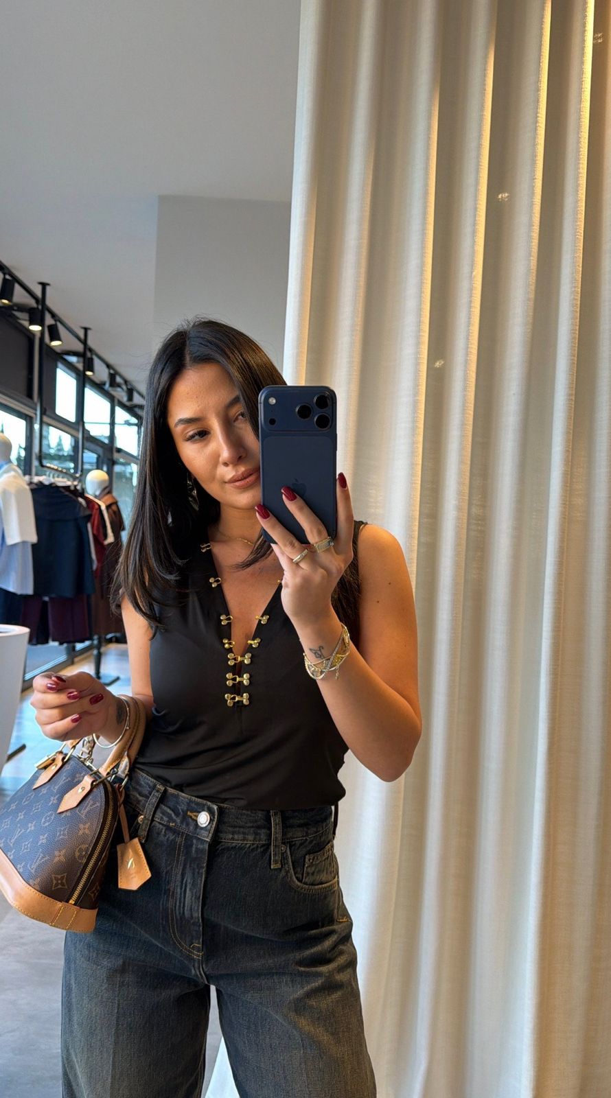 Black Sleeveless Top With Gold Button Detail