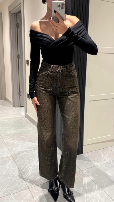 Brook Cut Leg Palazzo Jeans – Brown Tinted