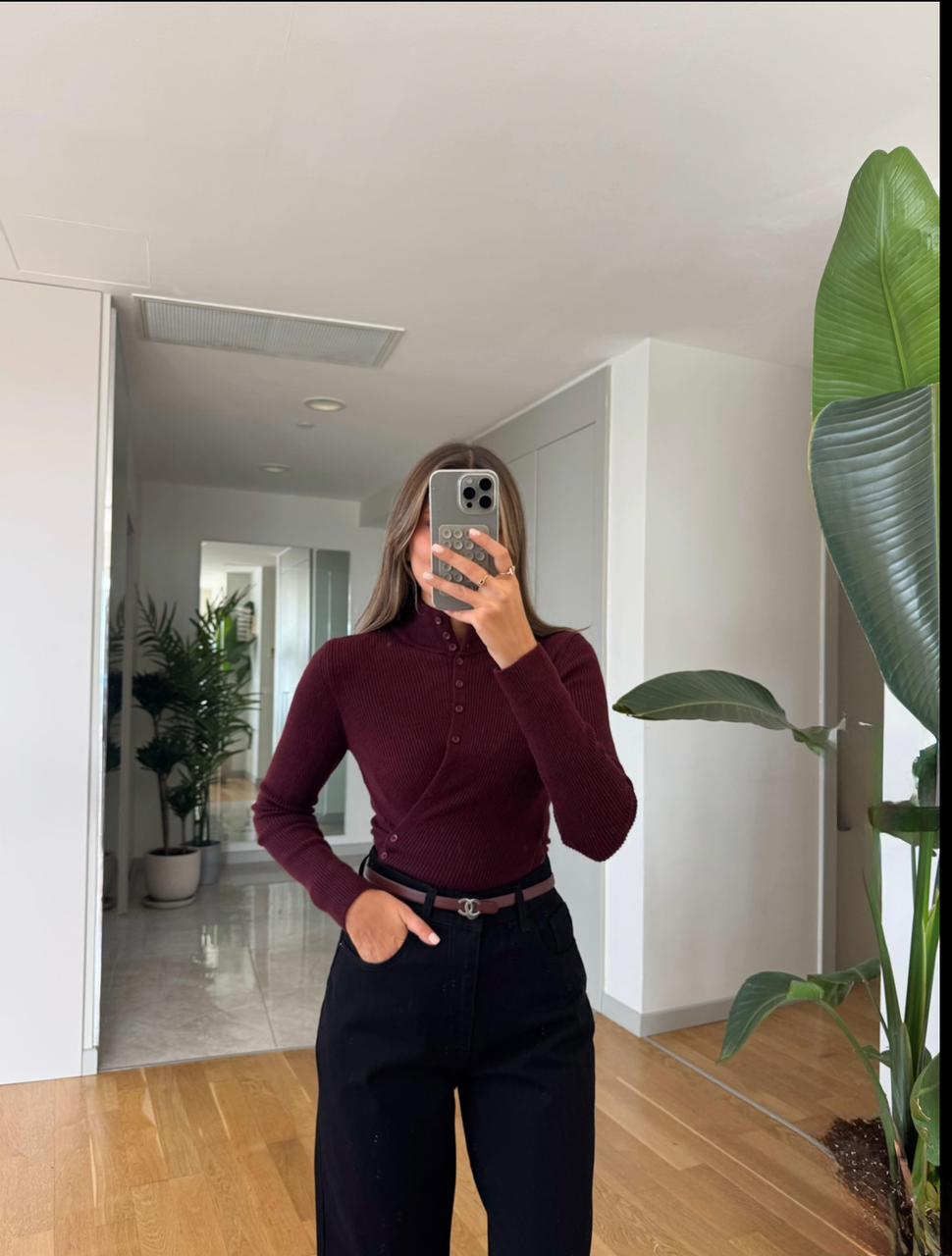 Bloom Button Detailed Knitwear – Claret Red