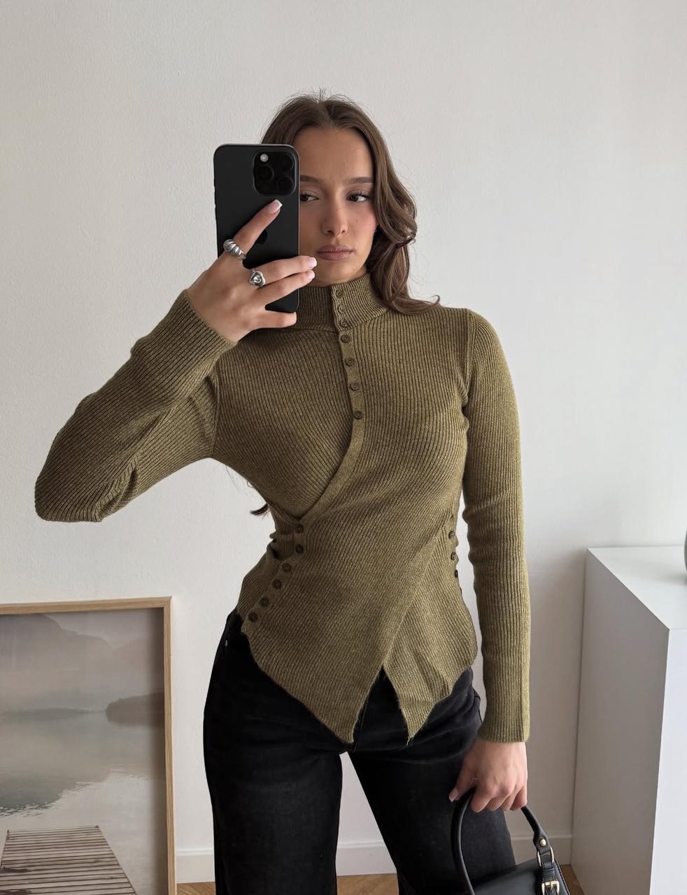 Bloom Button Detailed Knitwear – Khaki