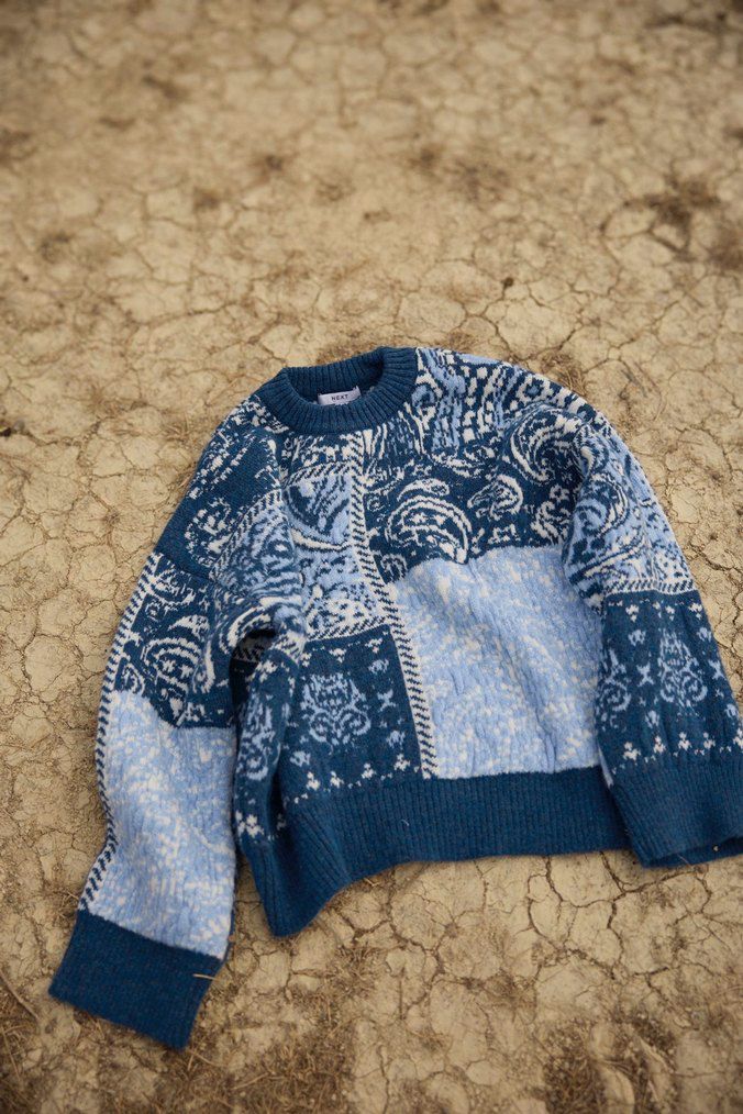 Bohemian Patterned Loose Blue Knitwear