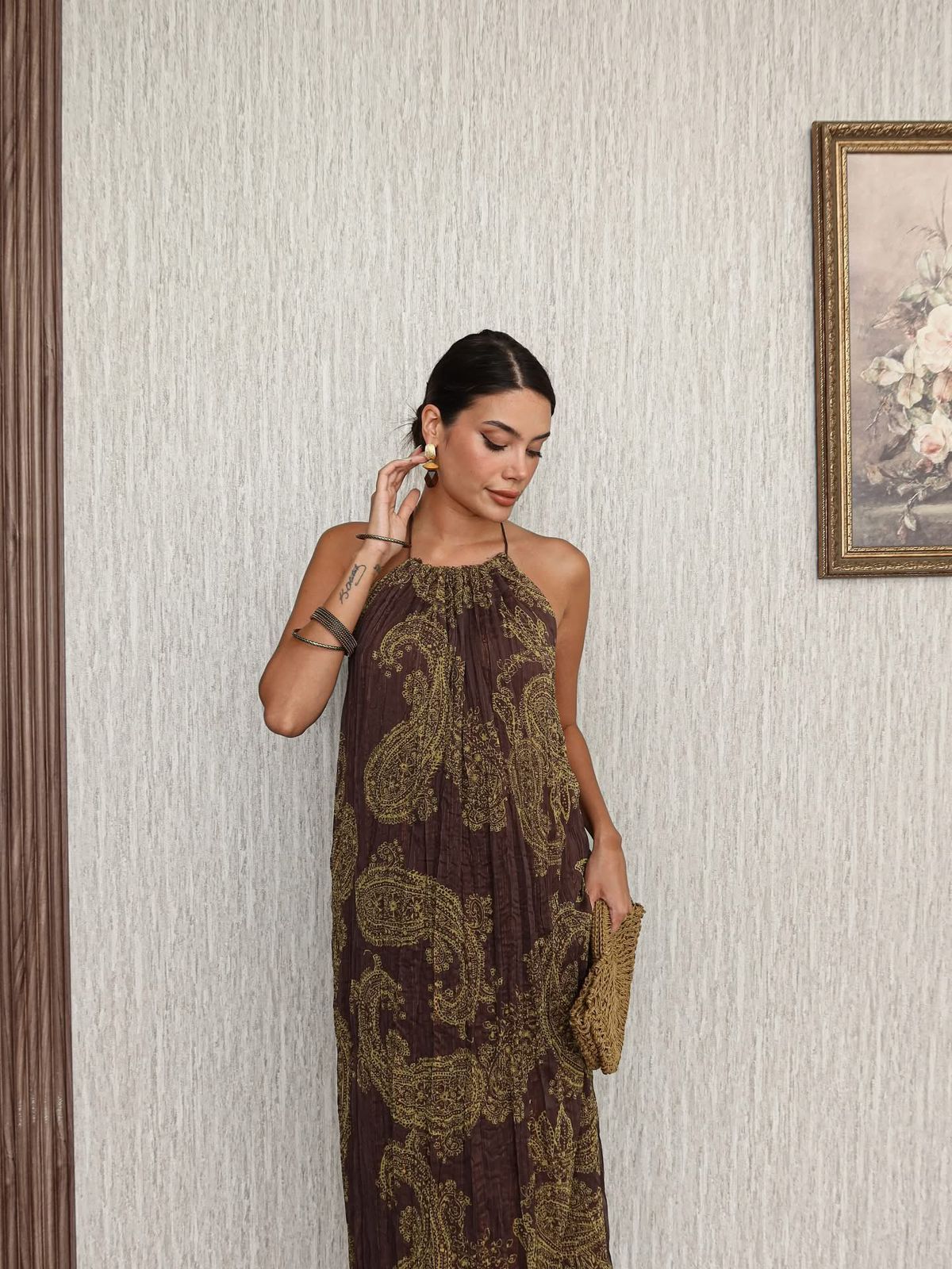 Colorful Positano Back Tie And Floral Patterned Linen Dress