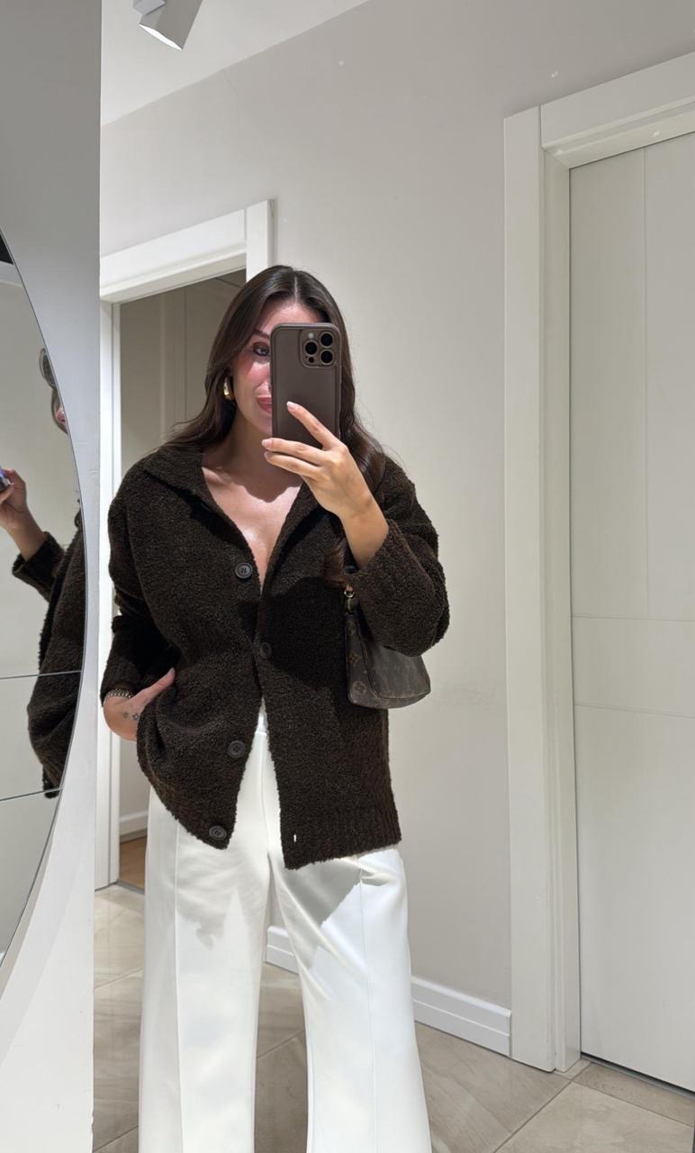 Brown Polo Collar Buttoned Brand Model Buklet Cardigan