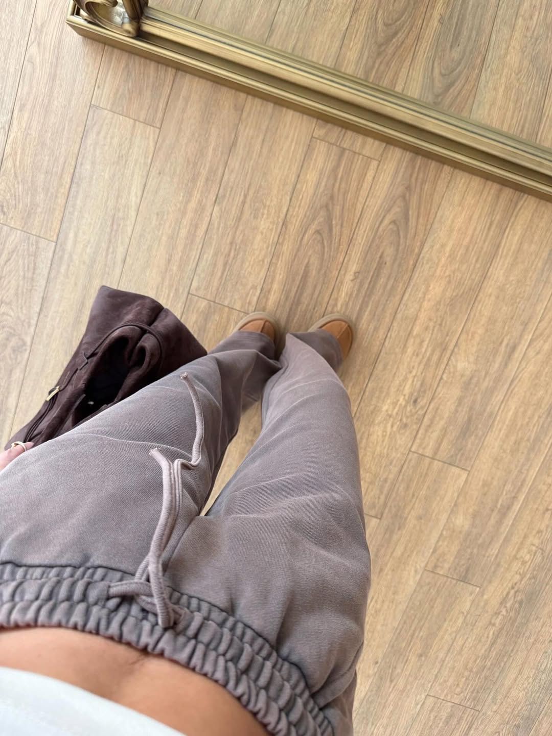 Brown Wide Leg Drawstring Pants