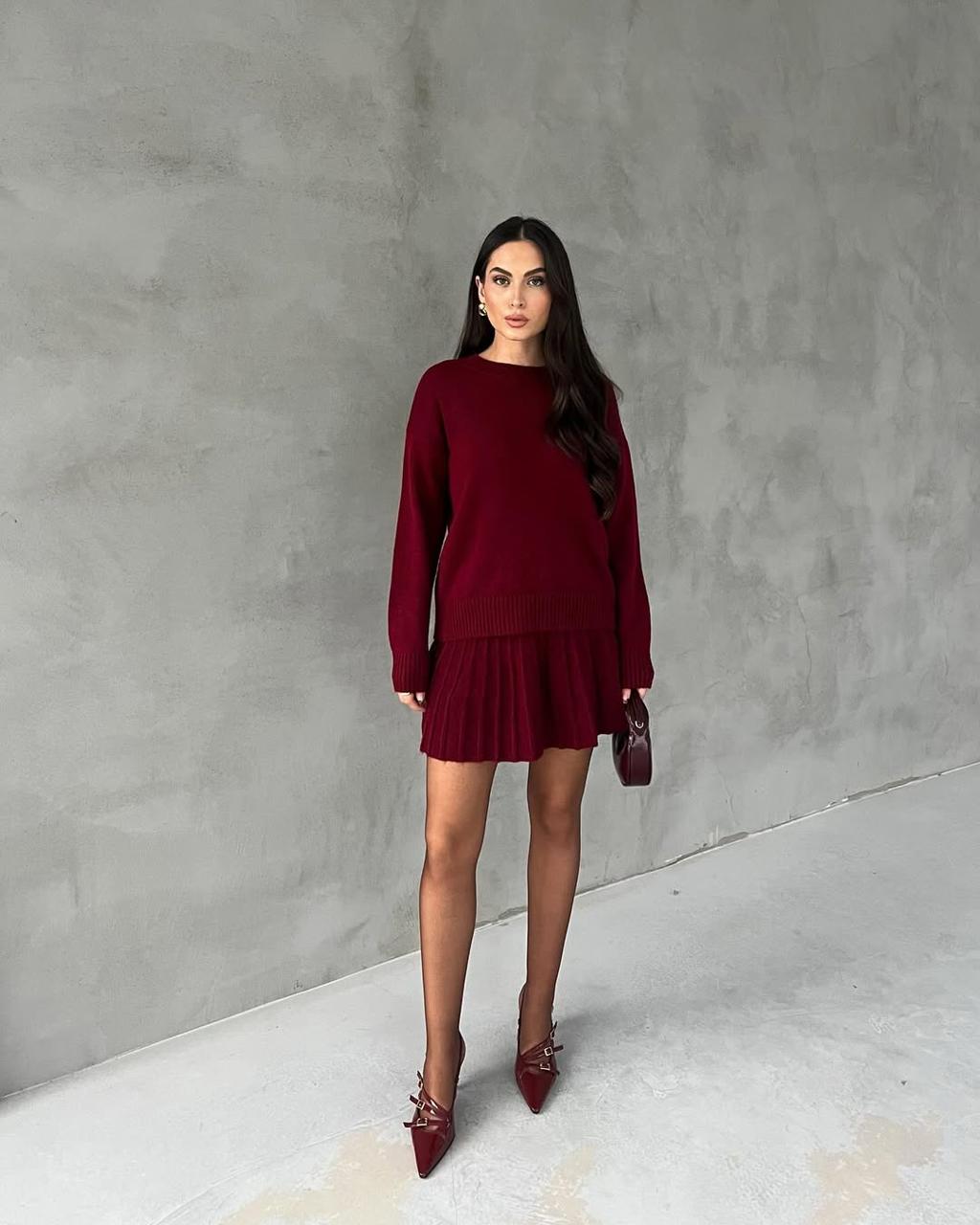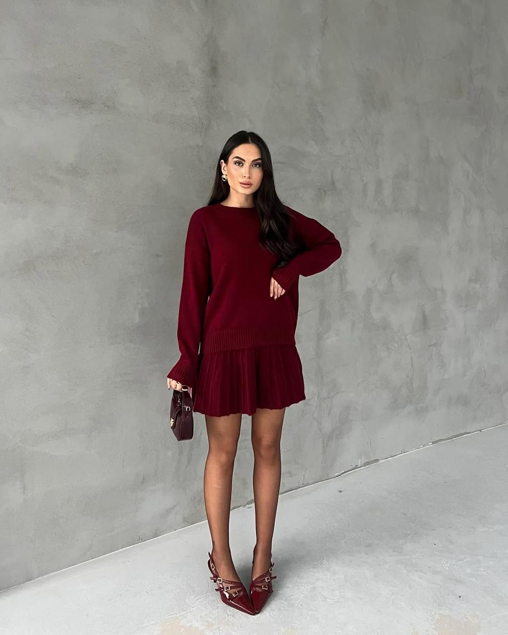 Black-white Checkered Stripe Detailed Trousers Blouse Knitwear Set