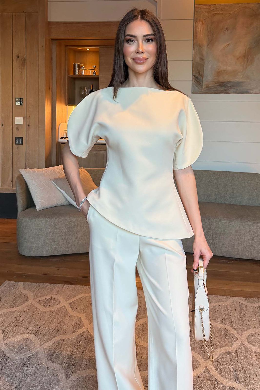 Cream Puff Sleeve Jacket And Pants Set
