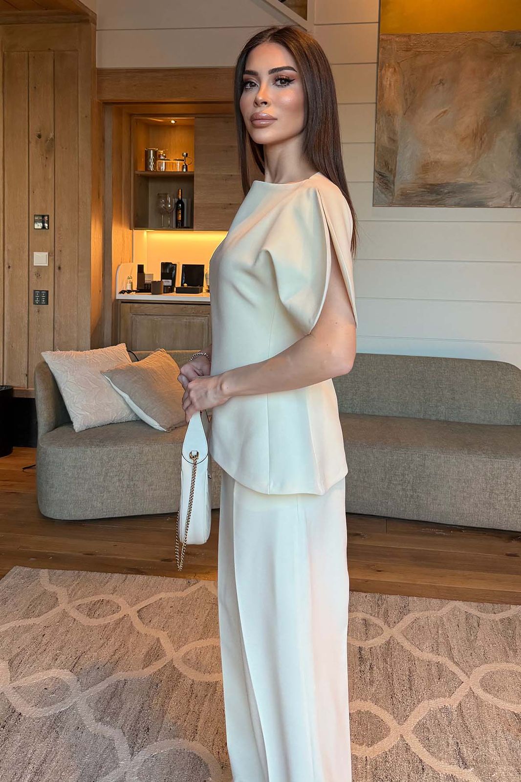 Double Sleeve Collar Detail Blouse Trousers Set