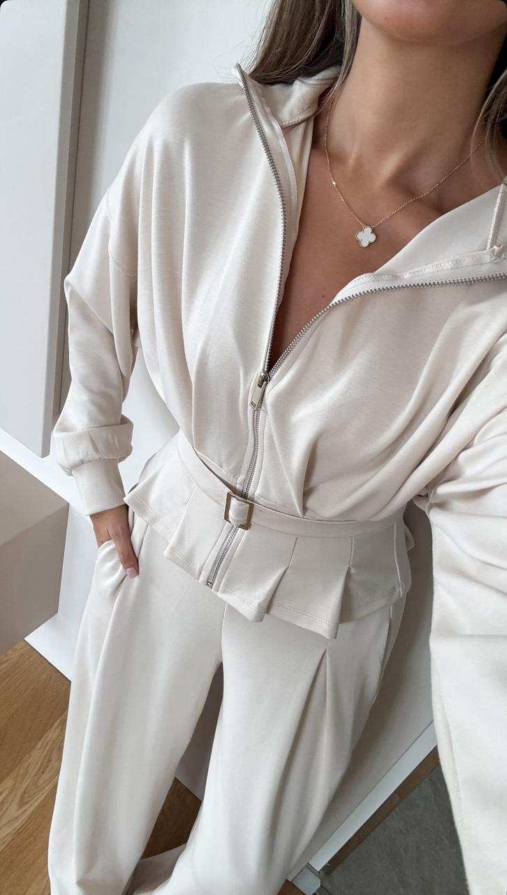 Off-white Zip-up Belted Loungewear Set