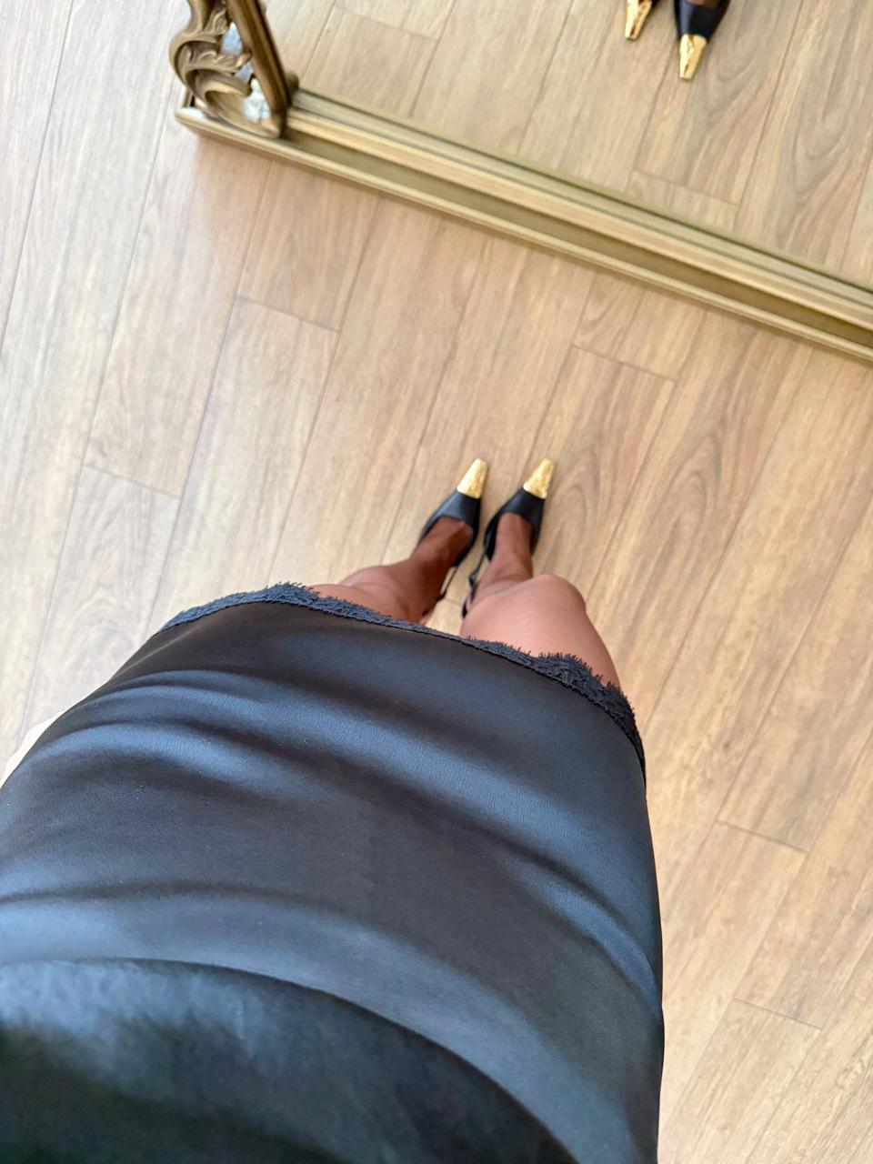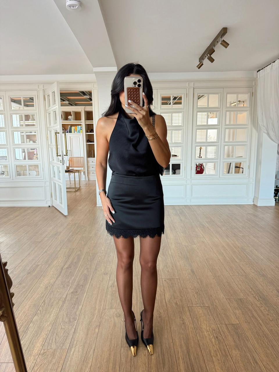Daffy Duck Side Zippered Hem Lace Mini Satin Skirt