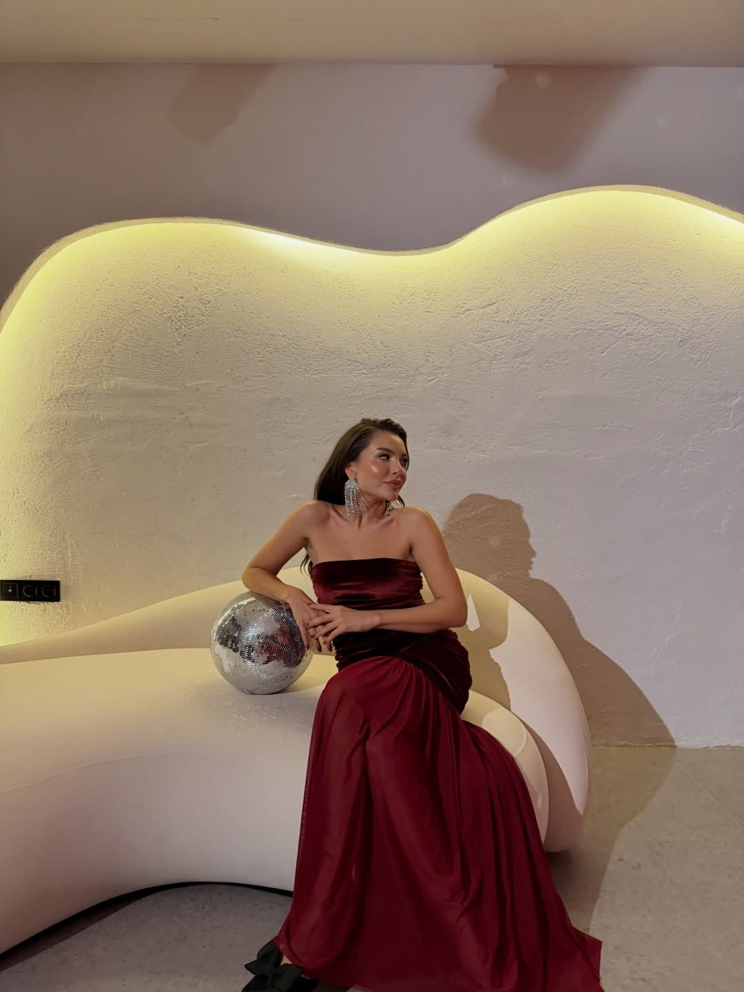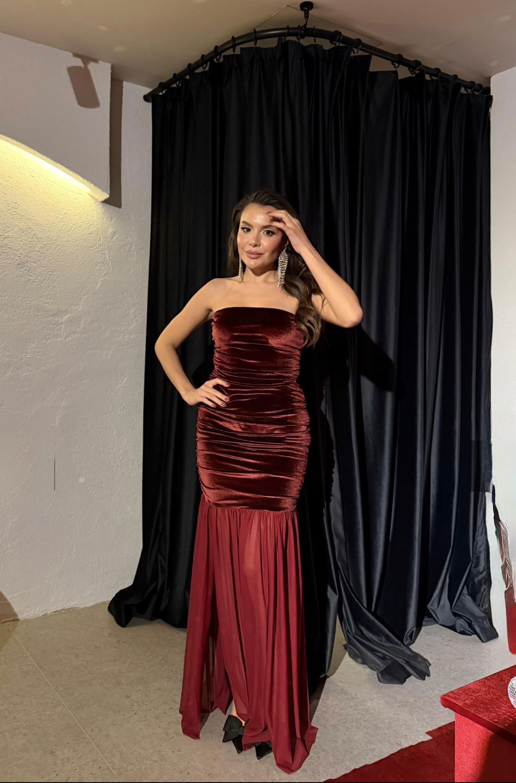 Demeter Claret Red Strapless Tulle Detailed Dress