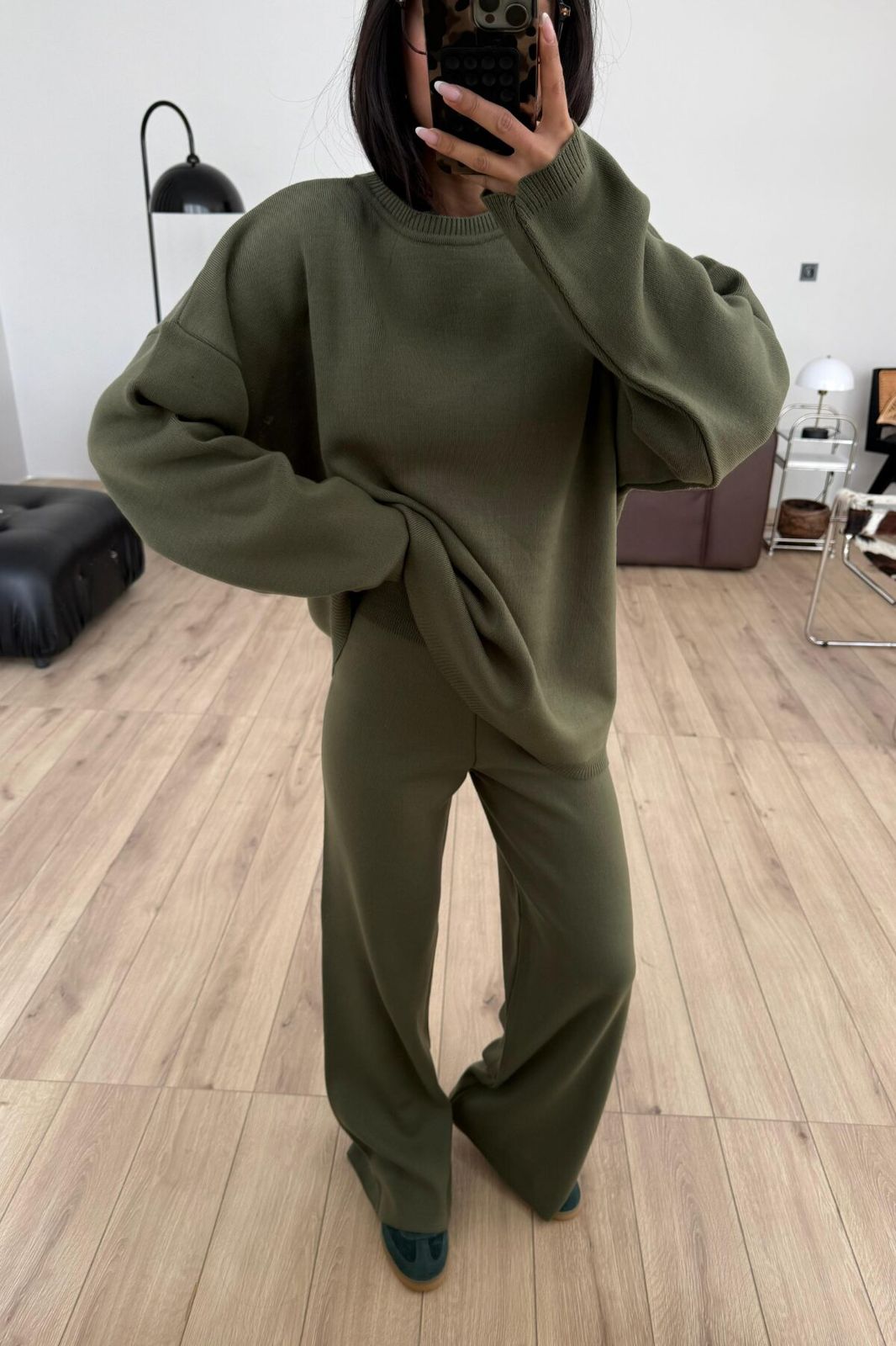 Black-white Checkered Stripe Detailed Trousers Blouse Knitwear Set