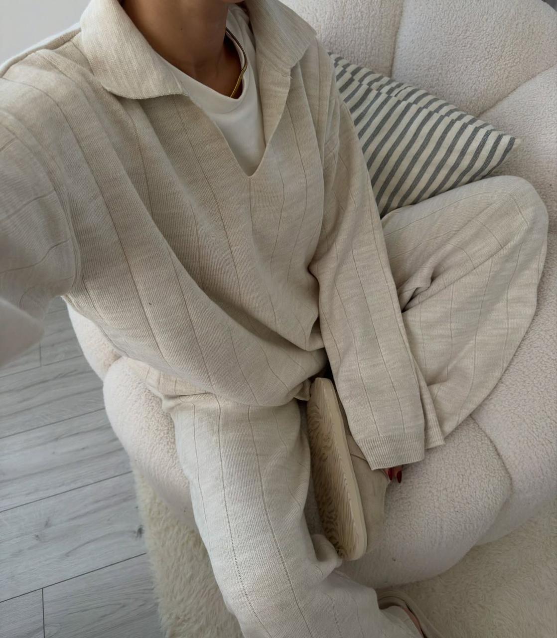 Black-white Checkered Stripe Detailed Trousers Blouse Knitwear Set