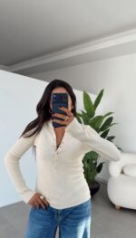 Ecru Snap Turtleneck Sweater