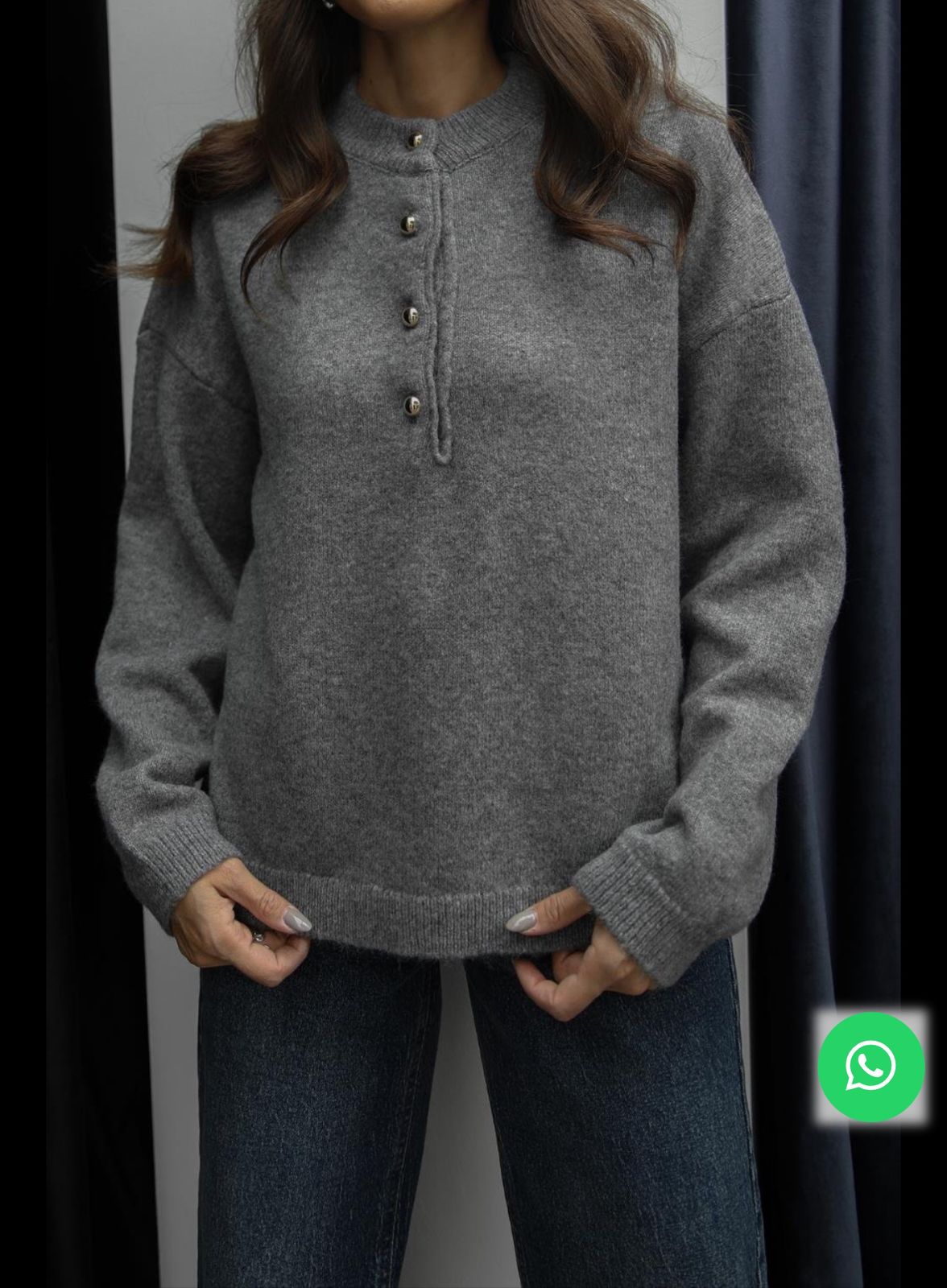 Grey Buttoned Sweater On Top