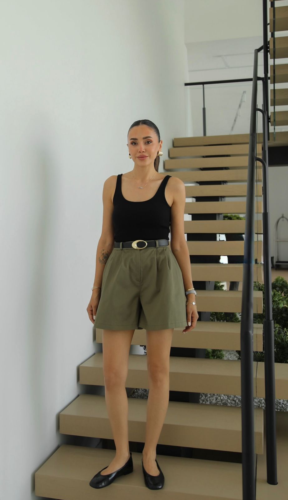 High Waist Olive Green Bermuda Shorts