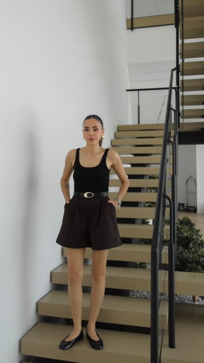 High Waist Brown Bermuda Shorts