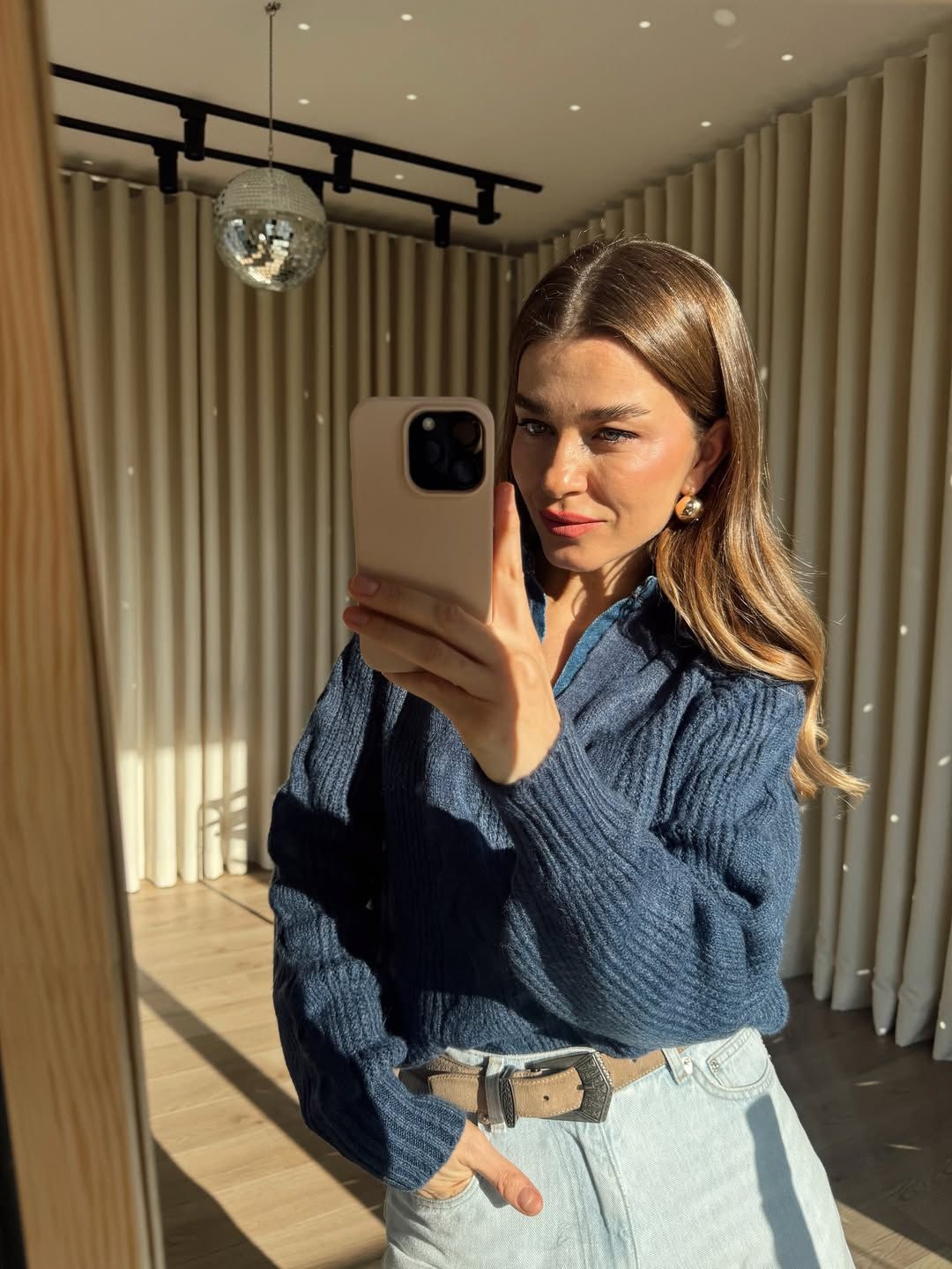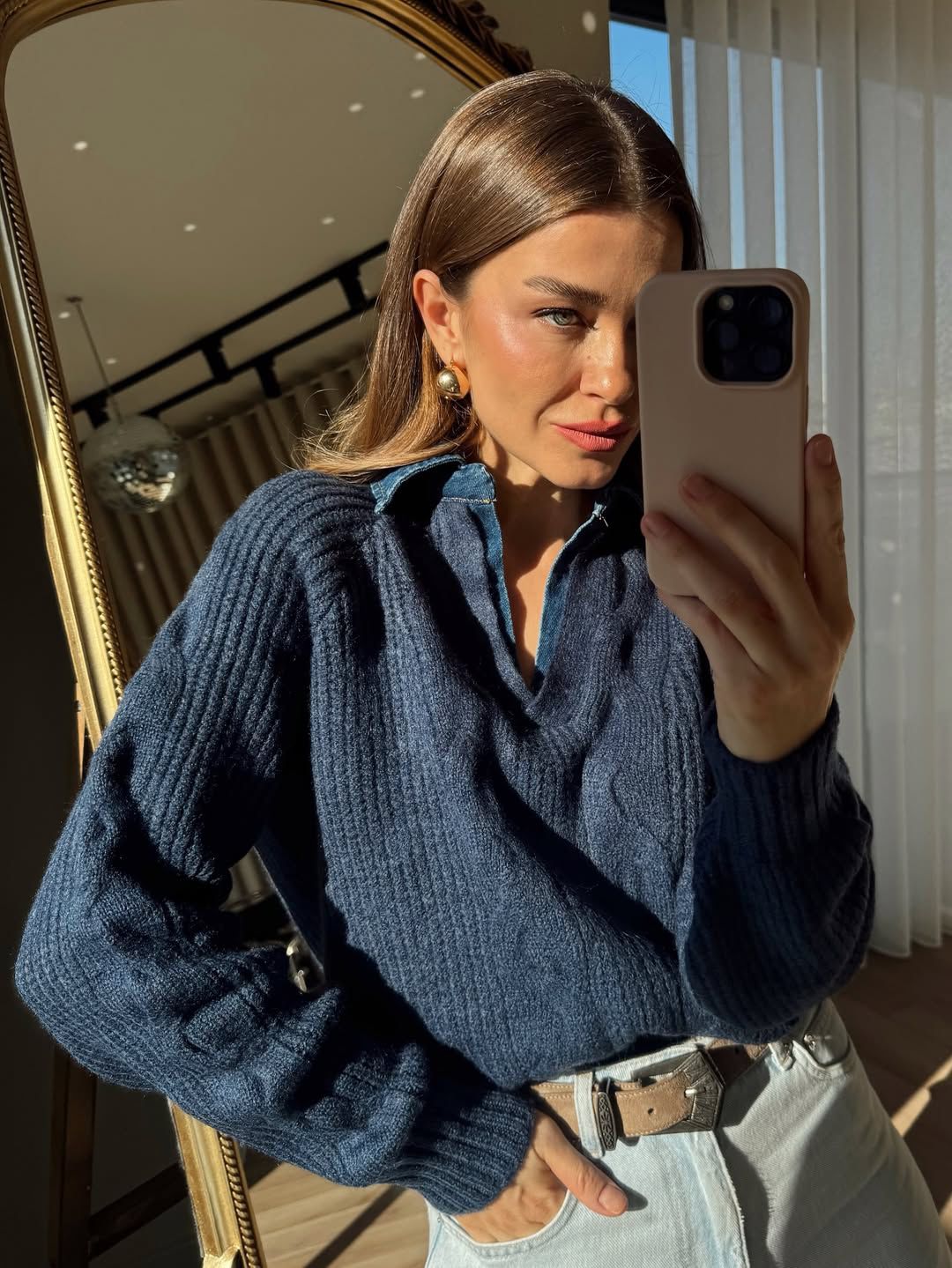 Indigo Collar Jean Model Oversize Knitwear Sweater