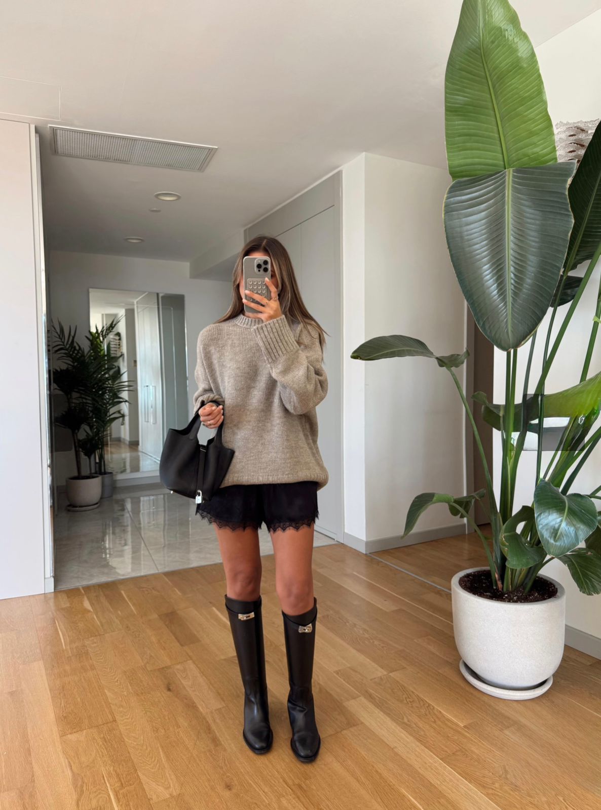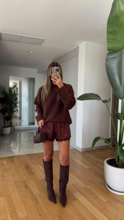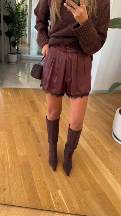 Lace Detailed Satin Shorts – Brown