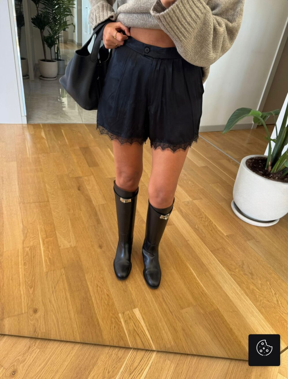 Lace Detailed Satin Shorts – Black