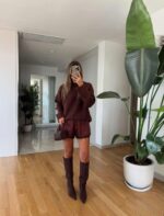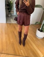 Lace Detailed Satin Shorts – Brown