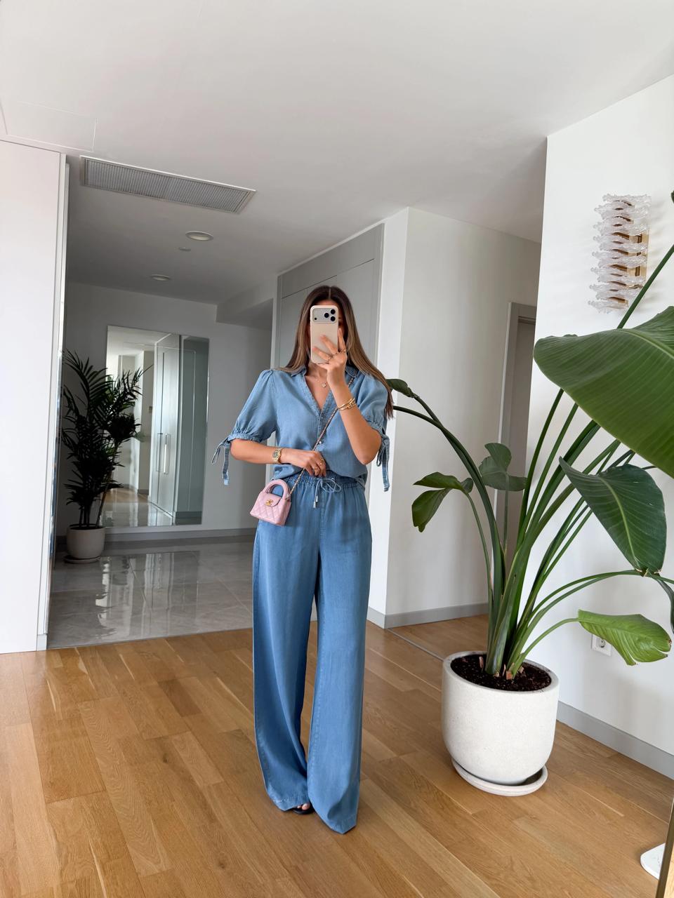 Khaki Elastic Waist Velvet Palazzo Trousers