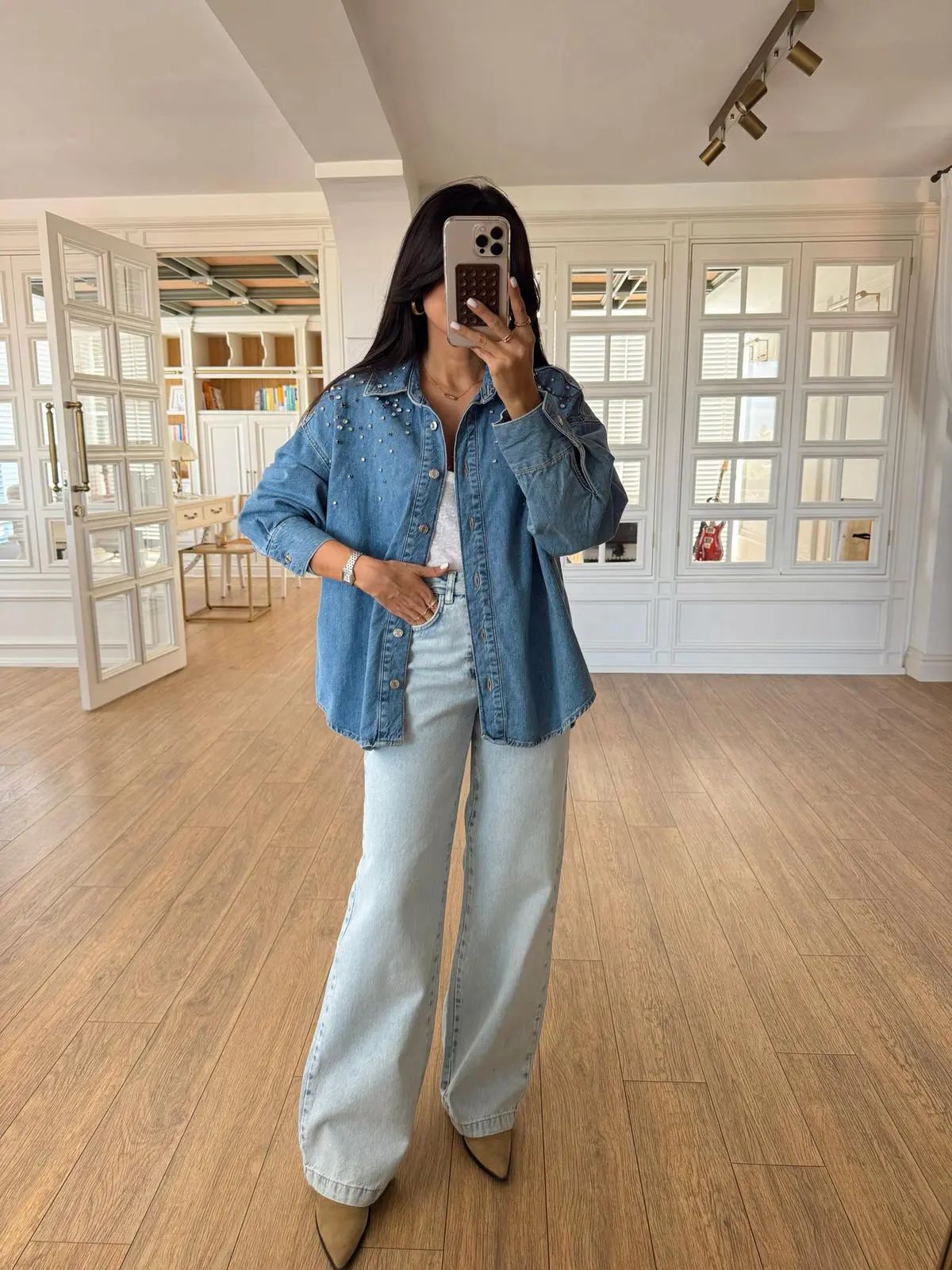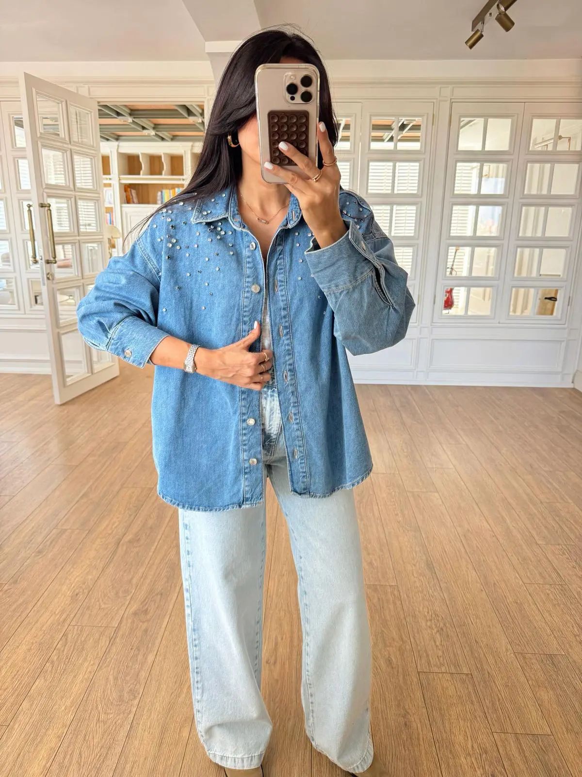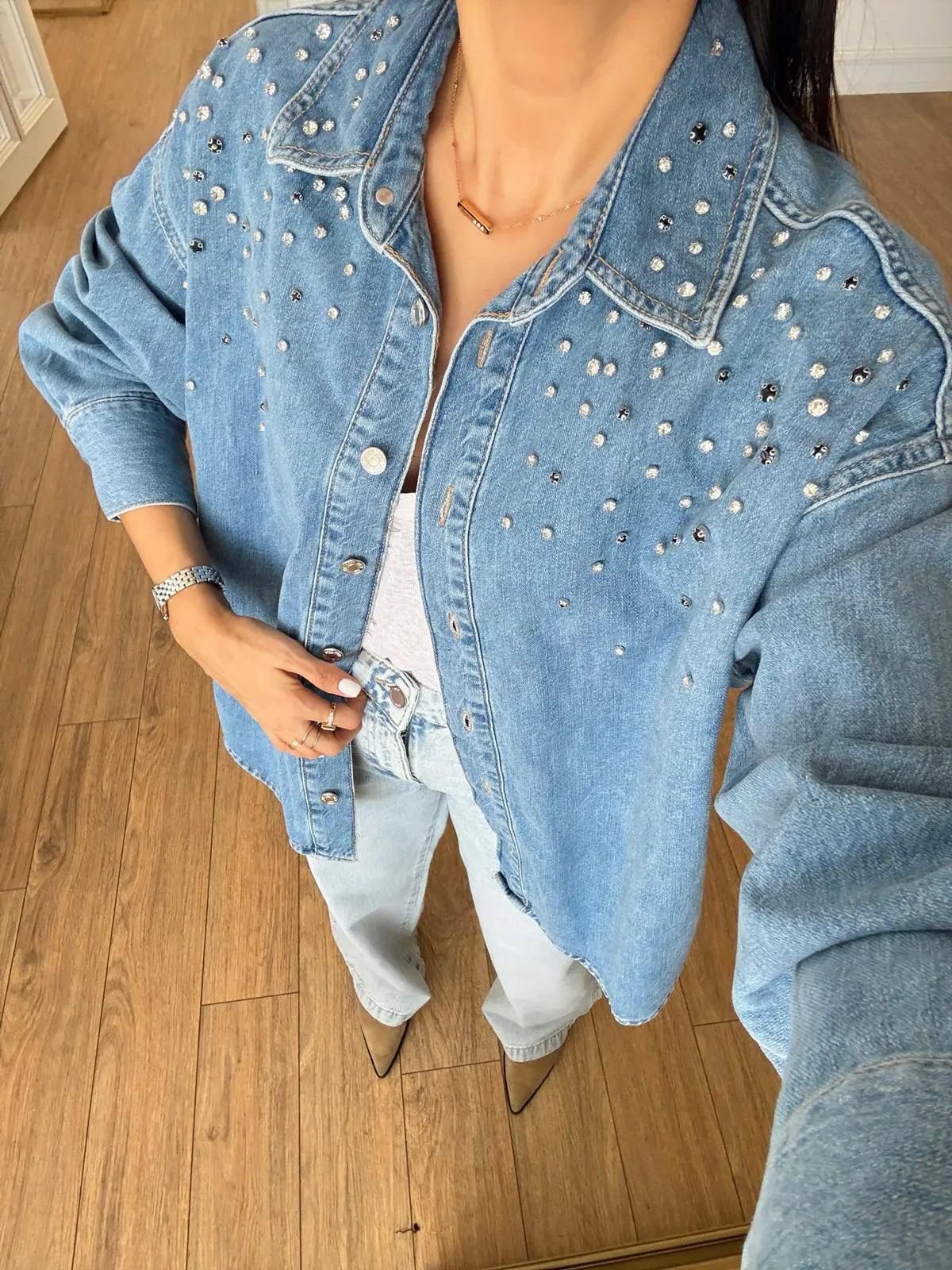Light Blue Studded Denim Shirt