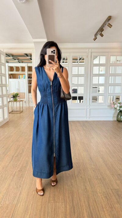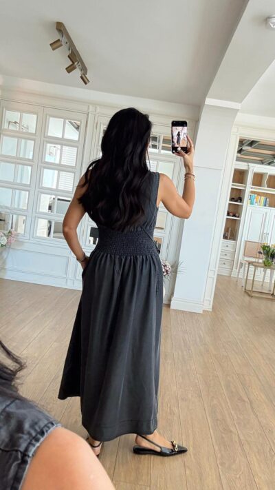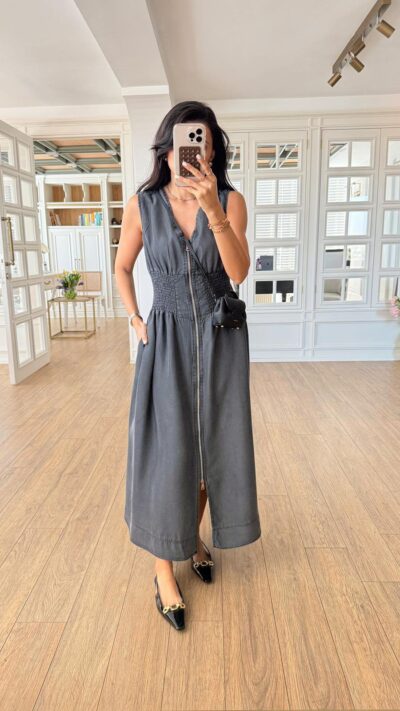 Sleeveless Black Zip Front Maxi Dress