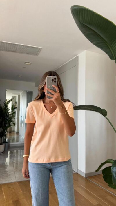 Peach V-neck Short Sleeve T-shirt