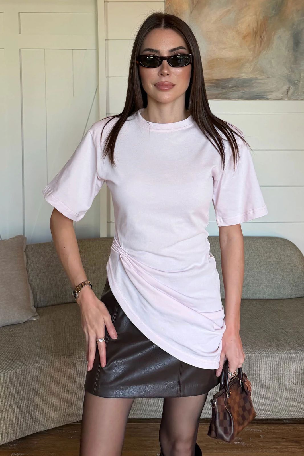 Light Pink Ruched Asymmetric T-shirt