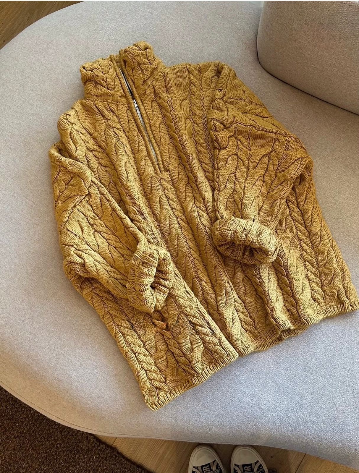 Mustard Cable Knit Zip Jacket