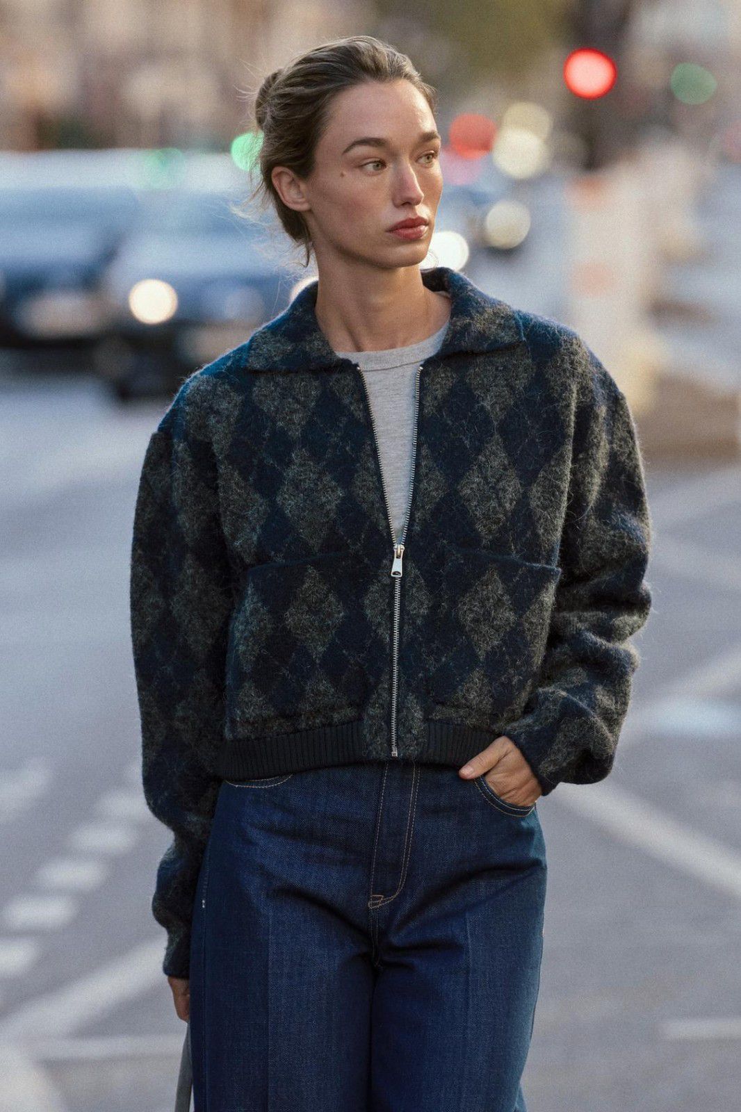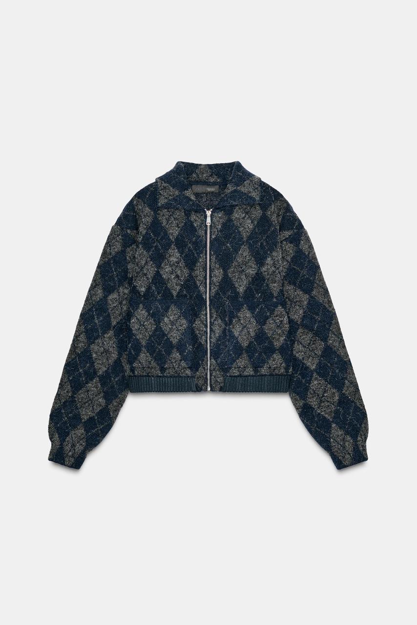 Ice Blue Self Patterned Chain Detailed Zippered Jacket